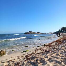 Mir hei üs hüt es Velo gmietet und si drmit ab a Strand. Es isch uh schön hie. Dr Strand isch auerdings aues angere aus läär. Mau luege ob mer die nächste Täg no es einsamers Fläckli finge.