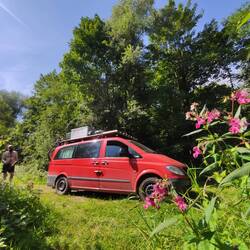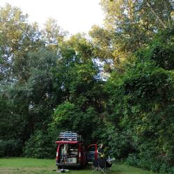 Vorteile: direkt am Fluss mit Badestelle, eben, sher abgelegen