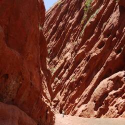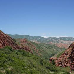 De Karakol où nous logeons, nous nous rendons pour la journée à Jeti Oguz, petite bourgade à une vingtaine de kilomètres.