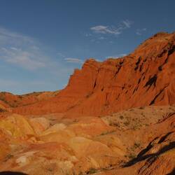 Nous passerons une après midi dans le canyon de Skazka. Les montagnes apparaissent tantôt rouge, jaune ou orange. A la lueur du soleil couchant, 🌄les couleurs donnent des contrastesLeggi altro