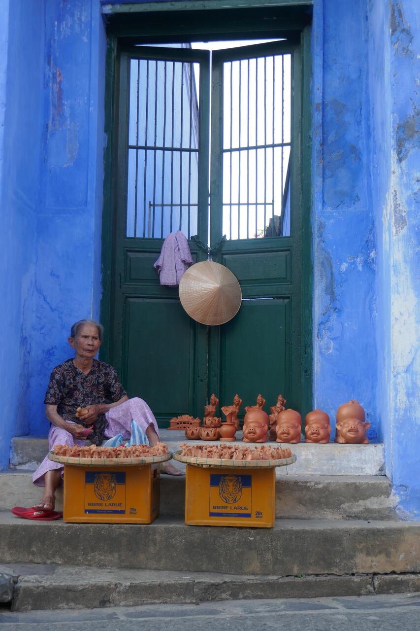 Hoi An est un lieu propice à la photographie, notamment aux portraits devant de vieux bâtiments aux couleurs jaune, bleu... 📸