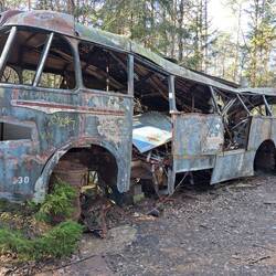 ABBAs Tourbus auf dem Schrottplatz gefunden.