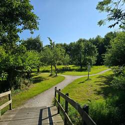 Na een paar km kom ik bij Berlikum. Dit is een leuk dorpje en als ik er bijna doorheen ben, fiets ik nog door een soort park met mooie boomgaarden. De bomen hangen vol met voornamelijk appels enLue lisää