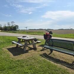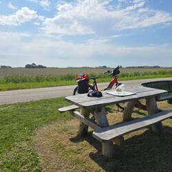 Een aantal km's na Holwerd zie ik een mooi plekje om te eten. Ik ga zitten en vanaf dan schijnt de zon. 😎