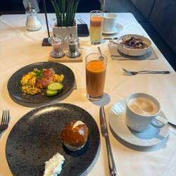 Ein einzelner Herr hat etwas länger geschlafen, darum ging es auch etwas später zum Frühstück.
