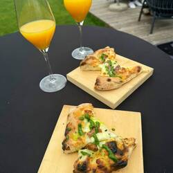 Heute gab es wieder einen Aperitif mit Musik vom Gastgeber und Steinofenpizza auf der Terrasse vor dem Abendessen.