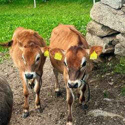 Nach dem Essen sind wir noch eine Runde gegangen und haben die Kälbchen besucht. Eins davon muht hier den lieben langen Tag (und auch täglich schon immer sehr früh 😴)