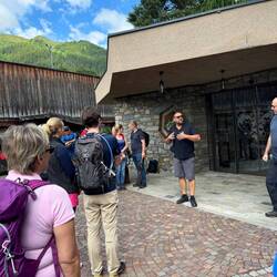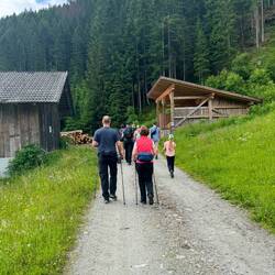 Um kurz vor 10 haben sich alle, die mit wandern wollten vor dem Hotel getroffen. Manni, einer Inhaber hat uns erklärt, was wir oben auf der Alm machen werden.