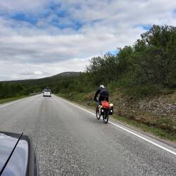 Kolonne zum Nordkapp. Unterwegs viele Radfahrer und sogar Wanderer überholt. Ziemlich gefährlich, da sie auch die engen, langen Tunnel benutzen mussten.