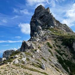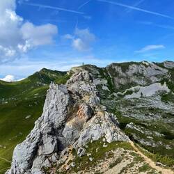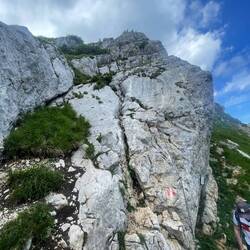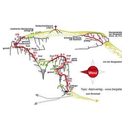 Nach der Ankunft am Plateau führte uns der Weg an der Mauritzalm vorbei zur Gruberscharte und dem "Achenseer 5-Gipfel-Klettersteig". Die felsigen GipfelMeer informatie