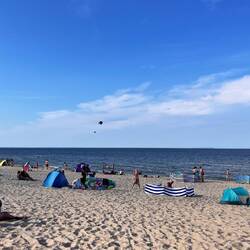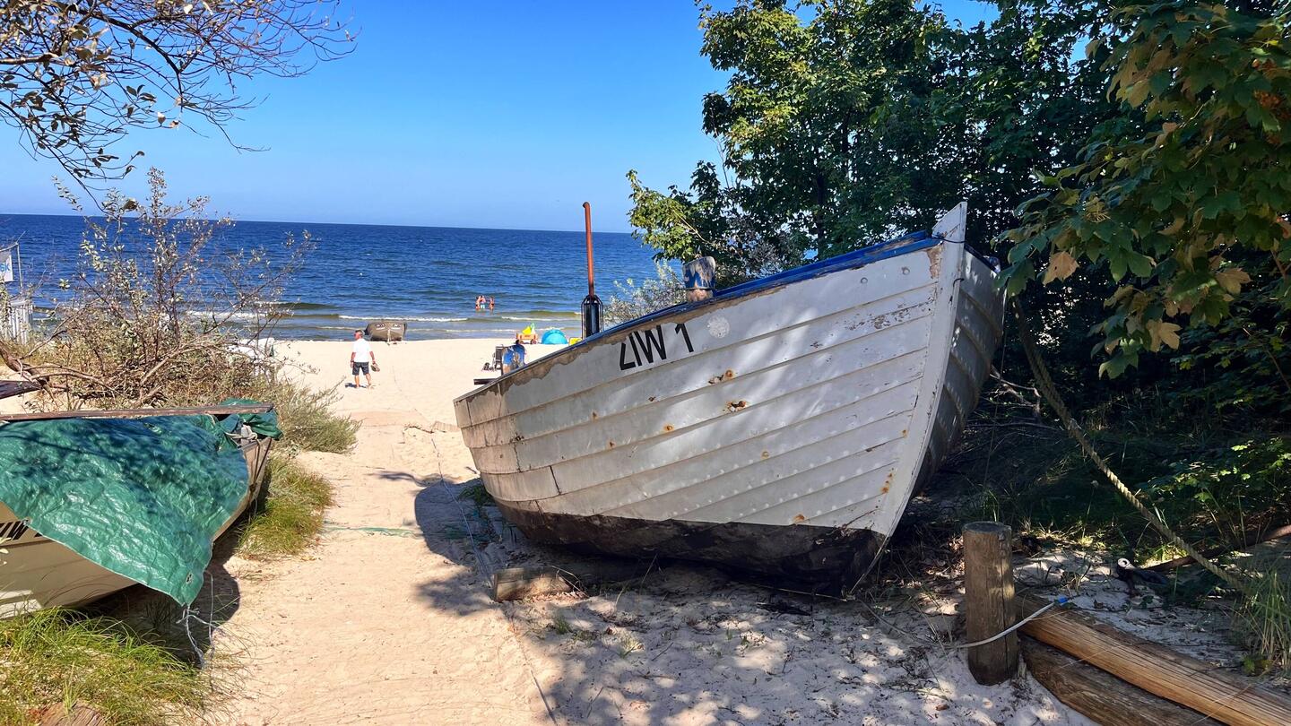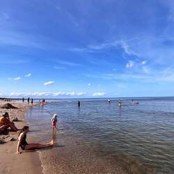 Bei strahlendem Sonnenschein räumten wir heute Morgen unsere sieben Sachen zusammen und verließen gegen halb 12 Krakow am See in Richtung Ostsee. Die Fahrt verlief entspannt, wir machten eine kleineLæs mere