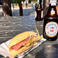 Auf dem Rückweg hielten wir in Trassenheide, wollten etwas essen, aber das favorisierte Lokal war ausgebucht, in einem anderen dauerte es viel zu lange, so dass wir doch bisLæs mere