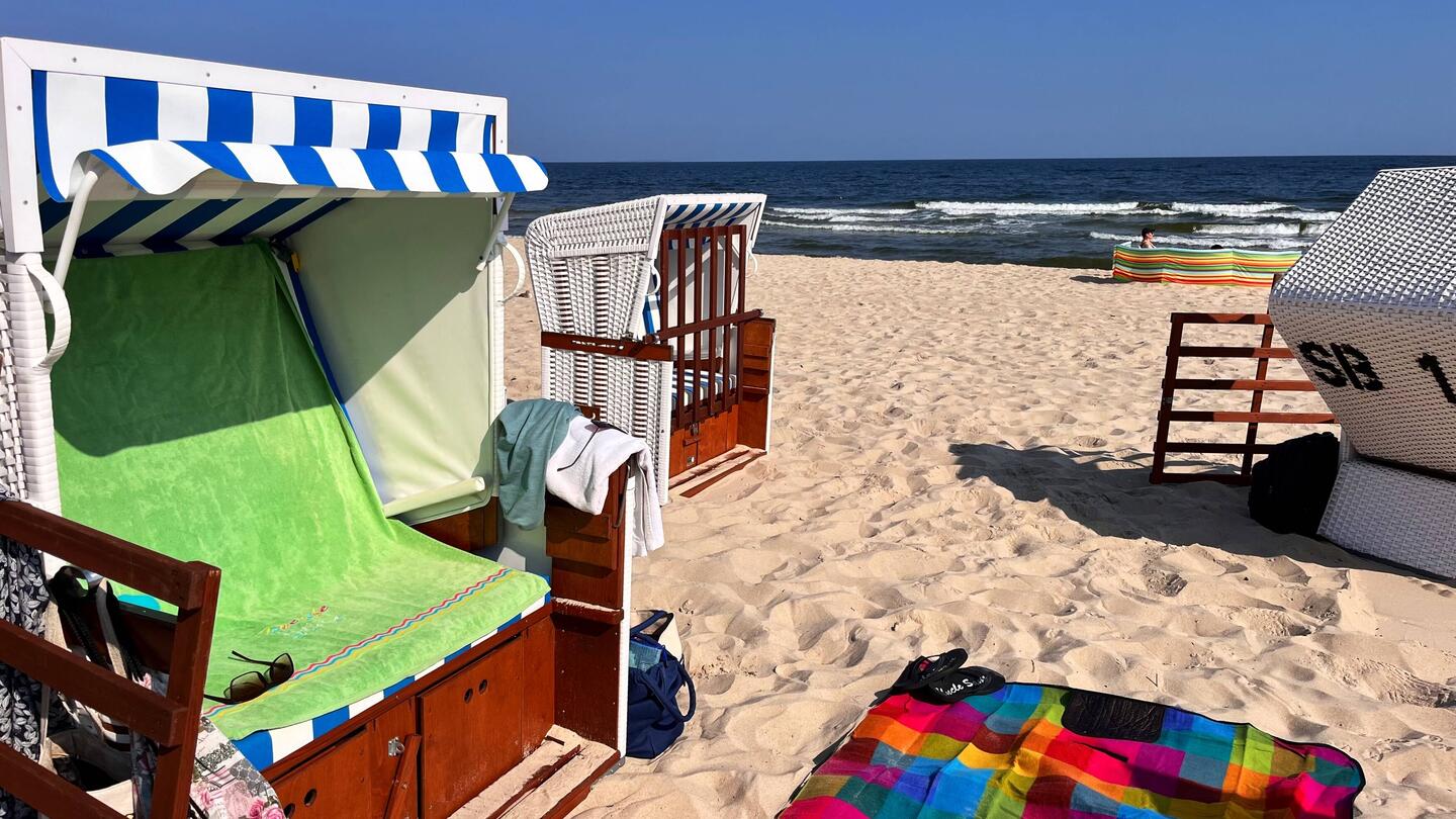 Kurz nach 10 traf die junge Familie in Zinnowitz ein. Wir buchten zwei Strandkörbe - gut dass wir frühLæs mere
