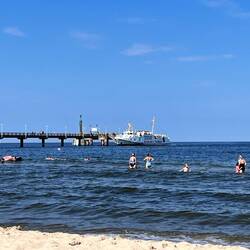 Deshalb war wieder Strandtag. Etwas früher als gestern fuhren wir heute zur Seebrücke, buchten einen Strandkorb undもっと詳しく