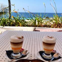 Nach einem langen Frühstück ging Sören ein wenig wandern, ich verbrachte die Zeit mit Lesen. Zum Kaffee trafen wir uns im El Aderno und ließen uns einen Zaperoco munden.
