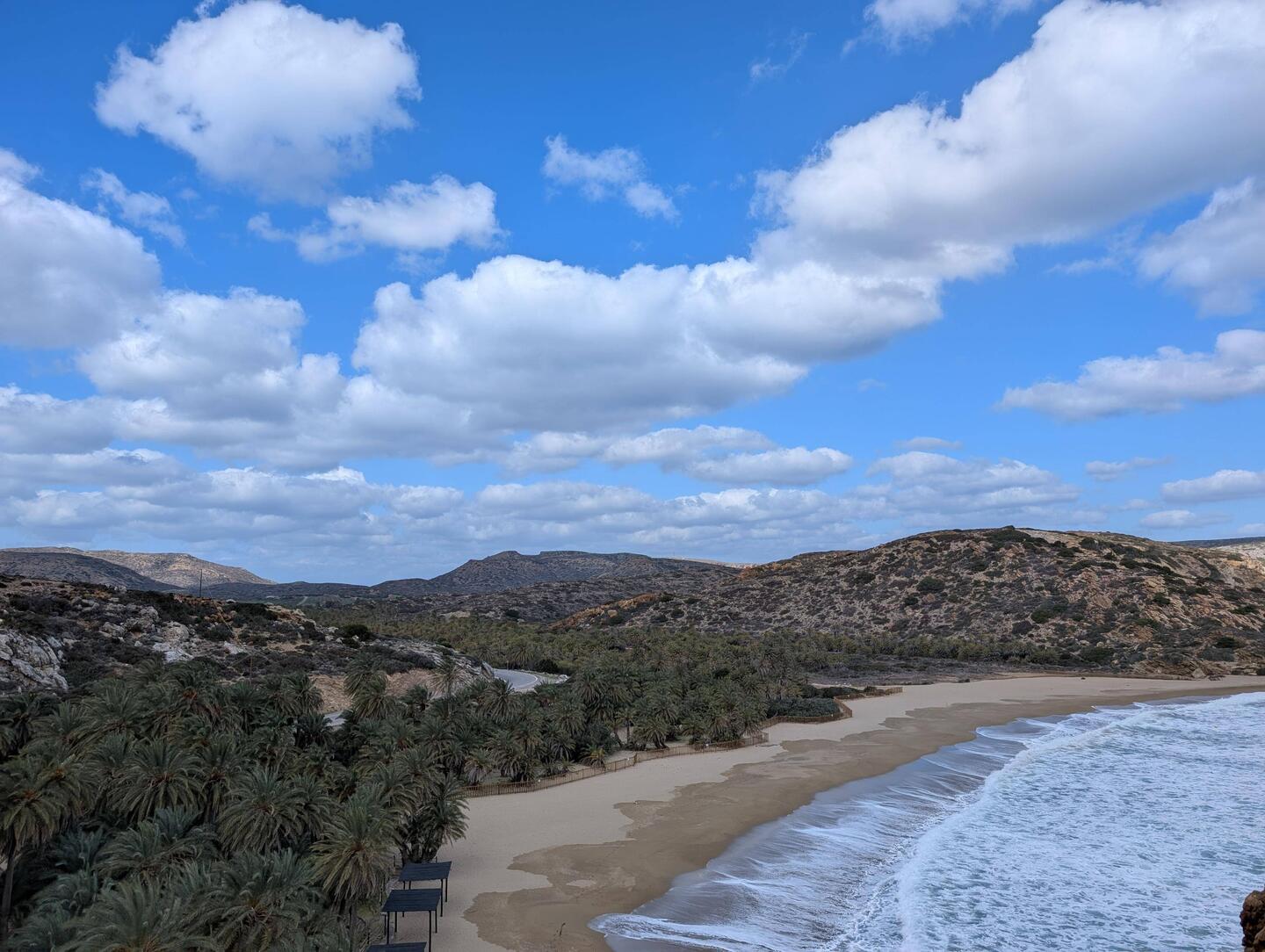 Heute besuchten wir den zweiten Palmen Strand auf Kreta, den Vai Beach. Bereits auf der Zufahrtsstrasse fing der Palmenwald an. Auch hier zeigten sicher wieder die Vorteile, die die Nebensaison bietet. Der breite und perfekte Sandstrand war nicht bedeckt von Strandliegen, sondern zeigte sich uns in seiner natürlichen Pracht. Wir hatten den gesamten Strand für uns alleine. Leider war der Palmenwald eingezäunt und das betreten verboten, aber such irgendwie gut so.