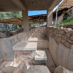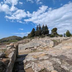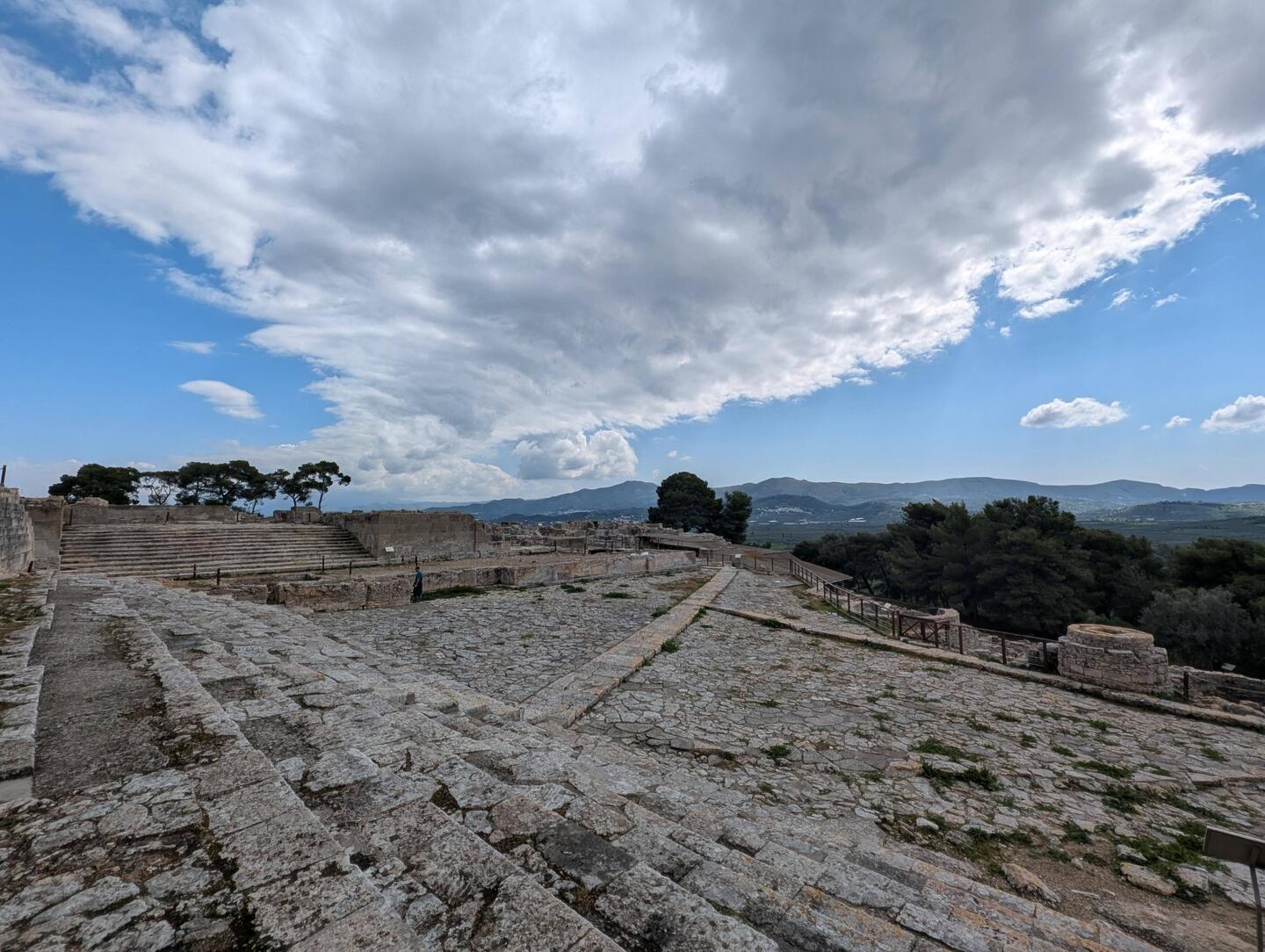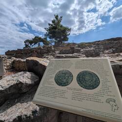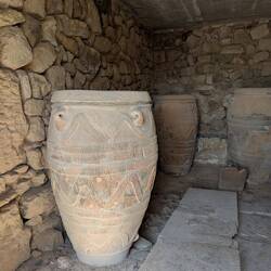 Der Palast von Phaistos stammt aus der minoischen Zeit & hat Ähnlichkeiten mit Knossos. Die Ausgrabungsstätte ist gross. Gespannt wandern wir durch den Palast & stellen uns vor wie es hier wohl mal ausgesehen hat. Viele Räume muss es gehabt haben. Alte Amphoren, zur Aufbewahrung gedacht, sind noch gut erhalten. Auch die Diskos von Phaistos wurde hier gefunden.