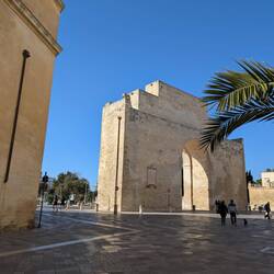Wir fahren weiter auf der Halbinsel Salento Richtung Süden. Lecce ist die grösste Stadt der Region & bekannt für seine vielen Bauwerke im Barockstil. Im Umland wird der weichere KalkarenitMeer informatie
