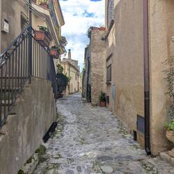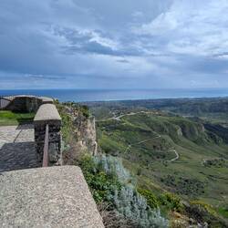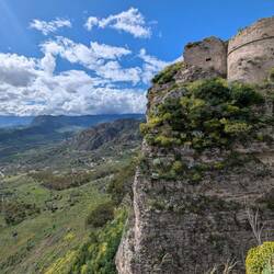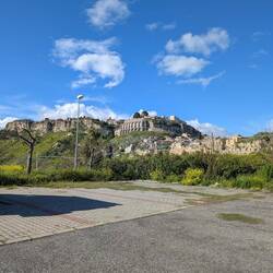 Bei strahlendem Sonnenschein besuchen wir das Dorf auf dem Felsen. Gerace ist alt. Die älteste Kirche datiert ins 10 Jhr. zurück. Die Gassen sind eng die Häuser aus Stein gebaut. Immer wieder gelangen wir zu Aussichtspunkten mit Blick zum Meer auf der einen Seite und in die grünen Hügel zur Anderen.