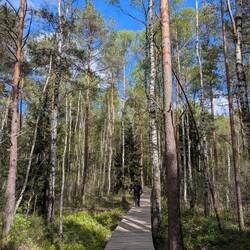 Es ist wieder kühler geworden. Also ziehen wir uns warm an und begehen den Varnikai Trail bei Trakai.