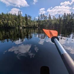 Das Wetter passt perfekt für eine Runde mit dem Boot auf dem Önskasjön. Lange haben wir darauf gewartet.