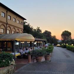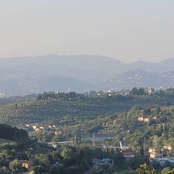 Tonight was pretty special - a dinner in the Tuscan Hills. The restaurant had views over Florence and the chef, Emilio, cooked two of the courses in front of us - Zucchini Risotto and a Grape Cake -Baca lagi