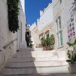 Ostuni is a unique town rising up from the flat plains near the Adriatic coast. Its whitewashed walls and houses with winding streets make you think you're somewhere in Greece. It is known as the 'white town'.Baca lagi