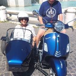 We toured Rome for three hours in a Vespa sidecar. Our guide was Marta and our driver was Fulvio. We went to all the main attractions, had coffee and aLeggi altro