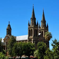Weiter ging es mit dem Bus zum Adelaide Oval, dem Fußball und Cricket Stadion. Mittlerweile war es richtig heiß. Wir liefen noch eine Weile durch den sehr sauberen und schön angelegten Park bis zur St. Peters Cathedral. Von dort nahmen wir den Bus in Richtung Bahnhof und fuhren die 40 Minuten zurück zum Schiff.