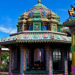 Nach diesem unvergesslichen Erlebnis ging es weiter zum Grand Basin Temple. Dies ist die heiligste Pilgerstätte der vielen hinduistischen Bewohner der Insel. Einer Legende nach soll der dort befindliche See mit dem Ganges Fluss in Indien verbunden sein und gilt deshalb als heilig. Hier herrscht eine sehr beeindruckten und besondere Atmosphäre. Auch die Kinder fanden die bunten Figuren mit den vielen Armen sehr spannend.