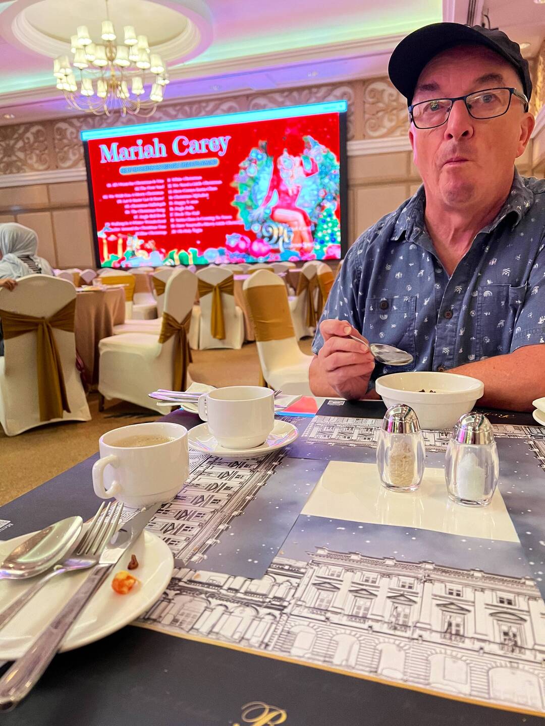 The one hour time difference meant a little lie in. We went for breakfast which turned out to be in the grand ballroom at tables ready for new year celebrations. A bit OTT for breakfast but all good experiences and they HAD blue cheese 🧀😋.