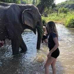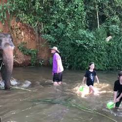 Today, we took a bus to meet an elephant family and their owners. We were a small group - just us and two couples from Canada and the UK. First we fed the elephants bananas and long stalks of grass.Read more