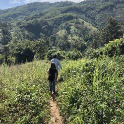 Today we took a boat ride from Chiang Rai up the Mae Kok River 🚣♀️. Our tour guide Chai and his dog Panda met us at the dock (Chloë and Malcolm wore a snake 🐍) and we drove to the startMeer informatie