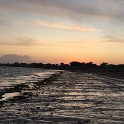Schön essen gegangen und dann die Flut in der Bucht beobachten. Moritz ist ganz fasziniert von Ebbe und Flut und fragt uns Löcher in den Bauch. Aber zum Glück gibt es Google & Co :-)