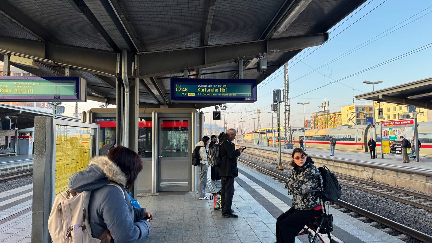 Warten auf S32 nach Karlsruhe auf Gleis 3.