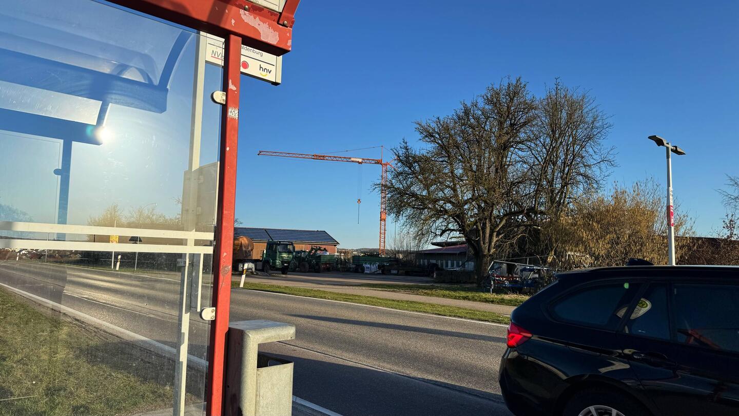 Warten auf Bus 7 zum Bahnhof Waldenburg.