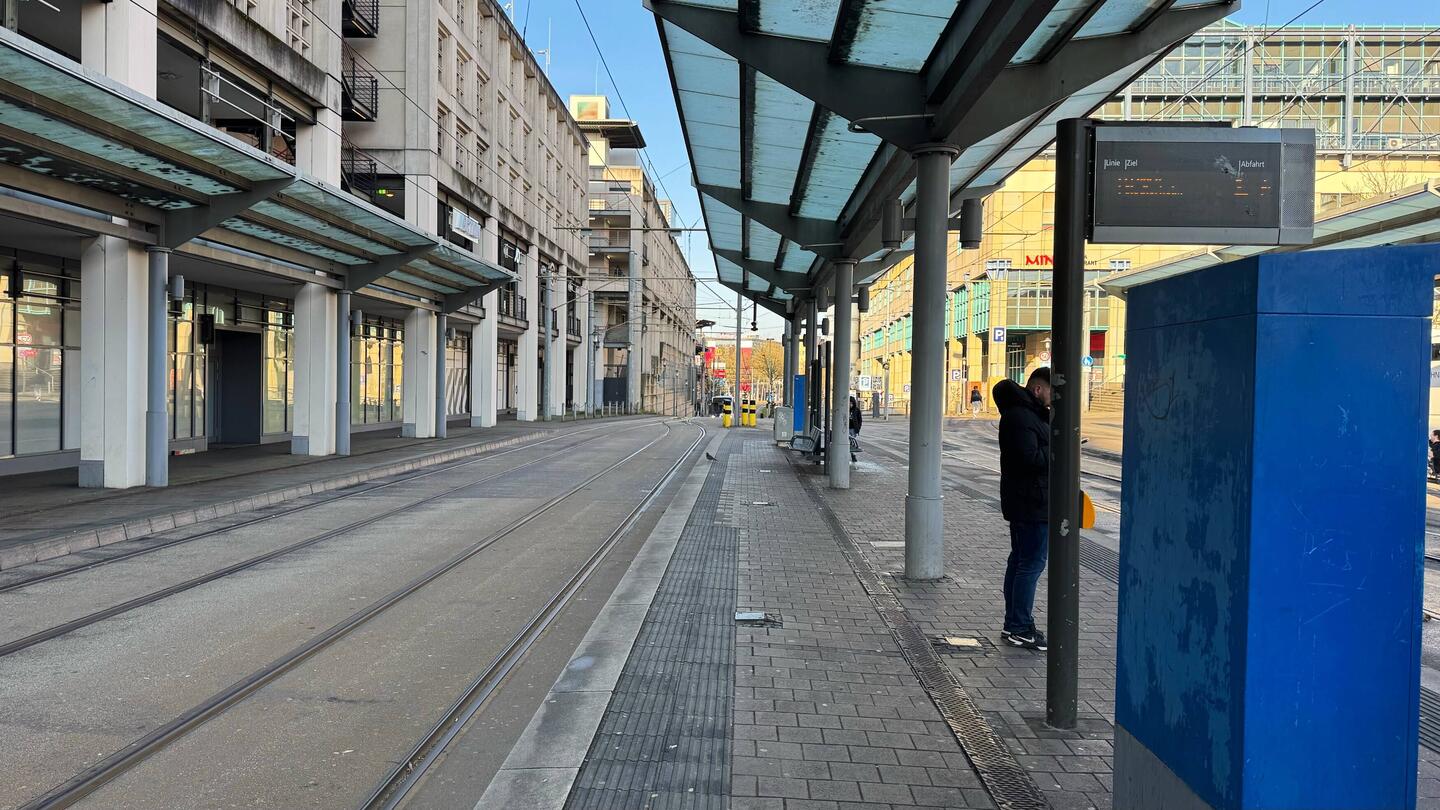 Warten auf Str 5 nach Mannheim Hbf.