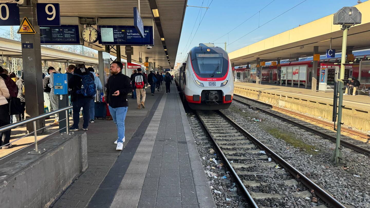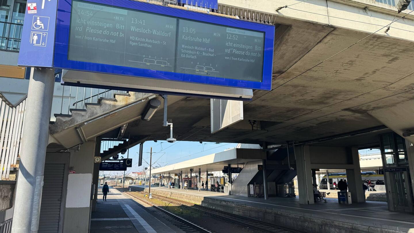 Warten auf RE73 nach Bruchsal auf Gleis 9.
