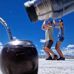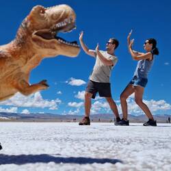 Salinas Gradndes ist ein Salzsee der mitten in den Anden liegt. Eigentlich kann man hier perfekte Bilder ohne jeglichen Größenvergleich und Tiefe machen. Bei uns hat das aus mehreren Gründen nicht geklappt: wir sind einfach keine Instagramer 😄, fehlende spanisch Kenntnisse und es war definitiv die falsche Stelle. Eigentlich darf weder ein Berg noch Menschen im Hintergrund sein um den richtigen Effekt zu bekommen.