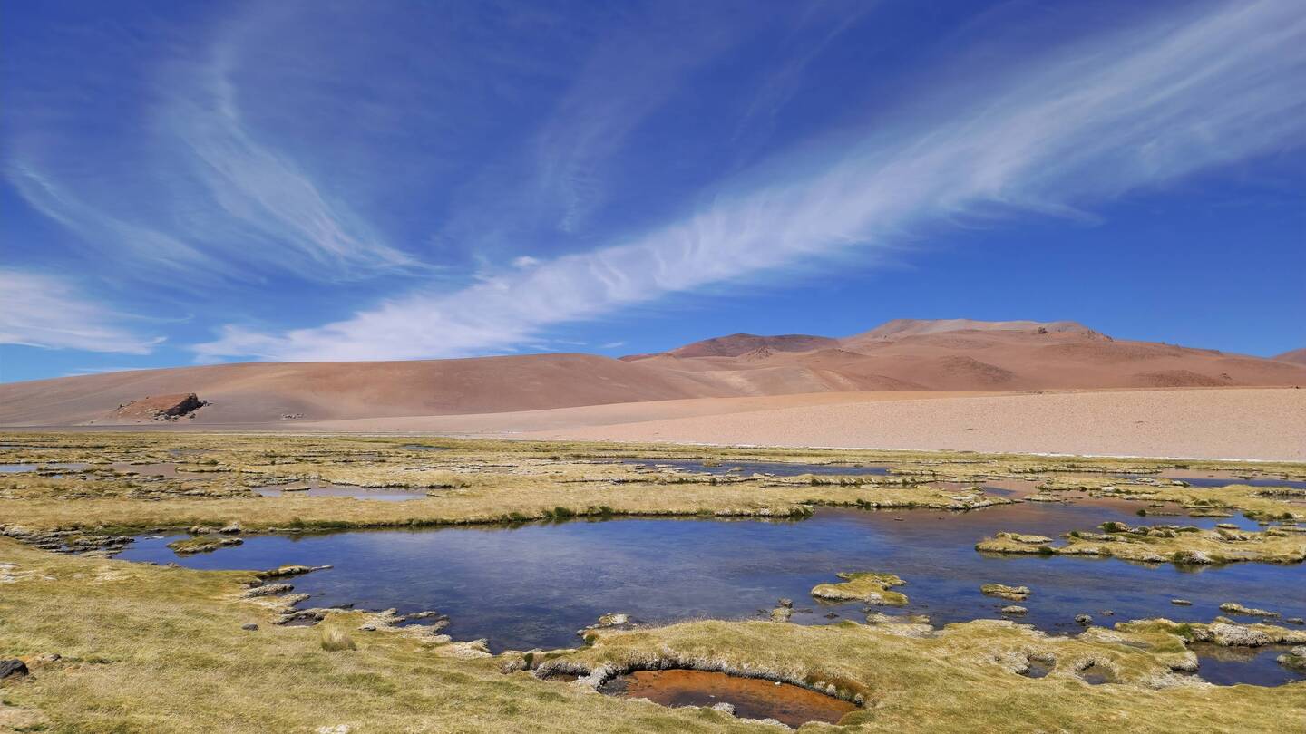 Ein wunderschönes Biotop in mitten der Wüste und eine Lagune in der Flamingos zu beobachten sind.