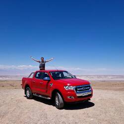 Nachdem wir uns vom gestrigen Tag erholt haben, ging es heute richtig los. Doch zuerst mussten wir 1,5h in die Nachbarstadt Calama fahren, um dort unseren roten Riesen in Empfang zu nehmen. Die Organisation des Mietwagen war eine echte Tortur, kommt davon wenn man last minute bucht 😅. Dafür hat es sich aber auch gelohnt, unser Ford Ranger lässt im Gelände kaum Wünsche offen!