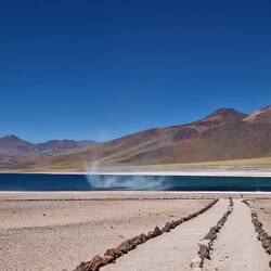 Unser zweites Ziel waren die Lagunas Miscanti und Miñiques. Sie liegen auf 4140 Meter am Fuße des Vulcans Miscanti. Der Weg hierhin ist nicht ganz einfach, aber spaßig. Video gibt's im nächsten Footprint.