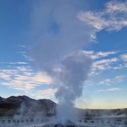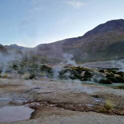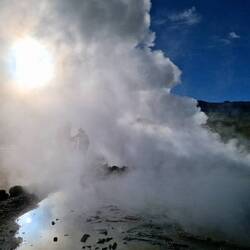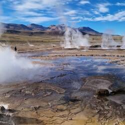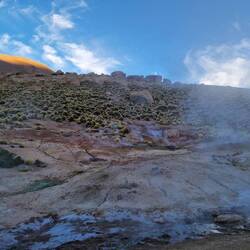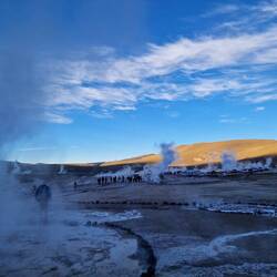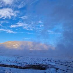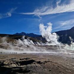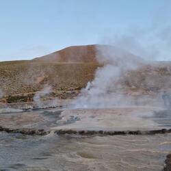 Heute um 3:30 Uhr klingelte der Wecker. Unglaublich früh, aber es ging nicht anders. Unser Ziel war es vor 6:00 Uhr den Vulcan El Tatio (4260m) erklommen zu haben. Hier haben wir das Geothermalfeld "Geysers Del Tatio" besichtigt, welches über 80 Geysire zu bieten hat.