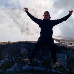 Oben angekommen waren wir das dritte Auto und somit einer der Ersten die das Gebiet betreten durften. Es war immernoch stockdunkel, gerade war der Mond über dem Rand des Kraters aufgegangen. Da standen wir schon vor den Ersten Geysiren. Wir haben hier etwa 3,5h verbracht und sind dabei fast erfroren, es hatte -5°C. Kurz vor 9:00 Uhr schaffte es dann auch die Sonne über den Rand des Kraters und tauchte alles in ihr goldenes und warmes Licht 🥳.