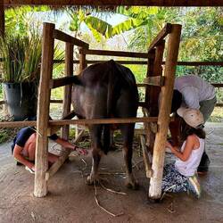 Il n’existe qu’une seule ferme de buffles dans tout le Laos car les laotiens ne traits pas les vaches ni les bufflonnes !
