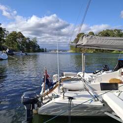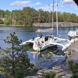 After a stroll around, we headed back to Whisper on Lökholmen where the large Oceanis 48(Vilma) that had arrived behind us initially but moved over later as the reports of extremely strong winds due overnight had created a flurry of mild panic in the inlet . Even though we were extremely sheltered from the west, the northwesterlies forecast 45 -50 knots, which had everyone checking lines and fenders. It would seem more of 'everything' was the order of the day. Our new friends on Vilma were very entertaining. Lots of stories shared. Many people asking us about our travels and 'had we really come all the way from England on this boat?'. Just outside the inlet the white crests were getting bigger and to windward over the rocks there were 3 boats bouncing & clanking around up to 1.5metres, and it looked like they were going to have an uncomfortable if not scary night .