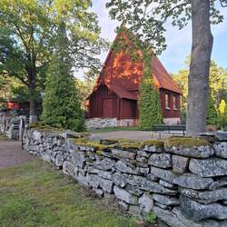 The evening stroll led up to the wooden church built in 1730 that replaced a chapel destroyed by fire . All immaculately cared for.