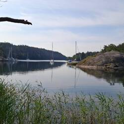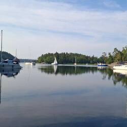 We arrived here after our afternoon at Artipelag with the north wind dwindling as we entered this very sheltered inlet . By the time the anchor had been dropped and lifted a couple of times, we wereRead more