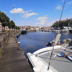 Happy to get out of the 25 knots and lumpy water to this fortified town and the welcoming marina at Heliushaven. The lovely harbour masters wife came out to wash off the duck poo on the pontoon... YouLæs mere