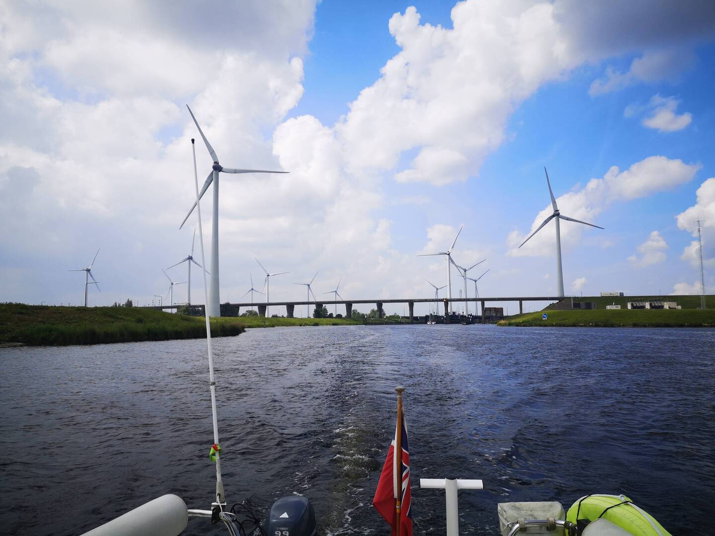 We made an early start from Hindeloopen to catch the best of the tide as we left the Ijsselmeer. With just the wind turbines for company on the water it was so still and it was already hot by the timeLæs mere
